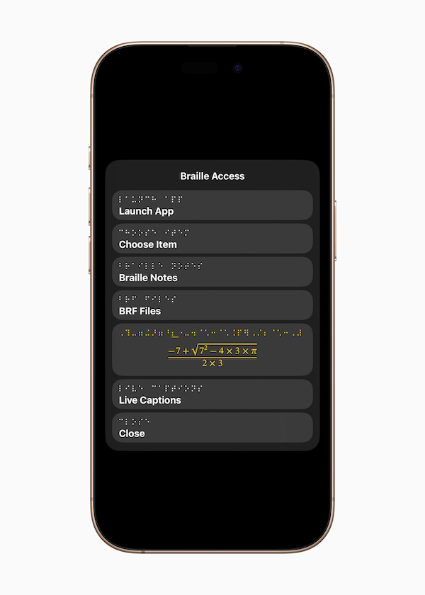 Braille Access 是一项全新的体会,可将 iPhone、iPad、Mac 和 Apple Vision Pro 打造成一款功用完全的盲文笔记东西,并与 Apple 生态体系深度集成。用户可经过内置的 app 启动器,运用盲文屏幕输入或外接盲文设备轻松翻开恣意 app。凭借 Braille Access,用户可快速以盲文格局记笔记,或运用常用于讲堂数学和科学学习的 “Nemeth Braille(尼梅斯盲文)”进行核算。用户还可以直接在 Braille Access 中翻开 BRF(盲文安排妥当格局)文件,获取丰厚的图书和材料内容,这些内容此前只能经过专用盲文笔记设备拜访。此外,集成版实时字幕功用还能将对话即时转录到盲文显示器上。