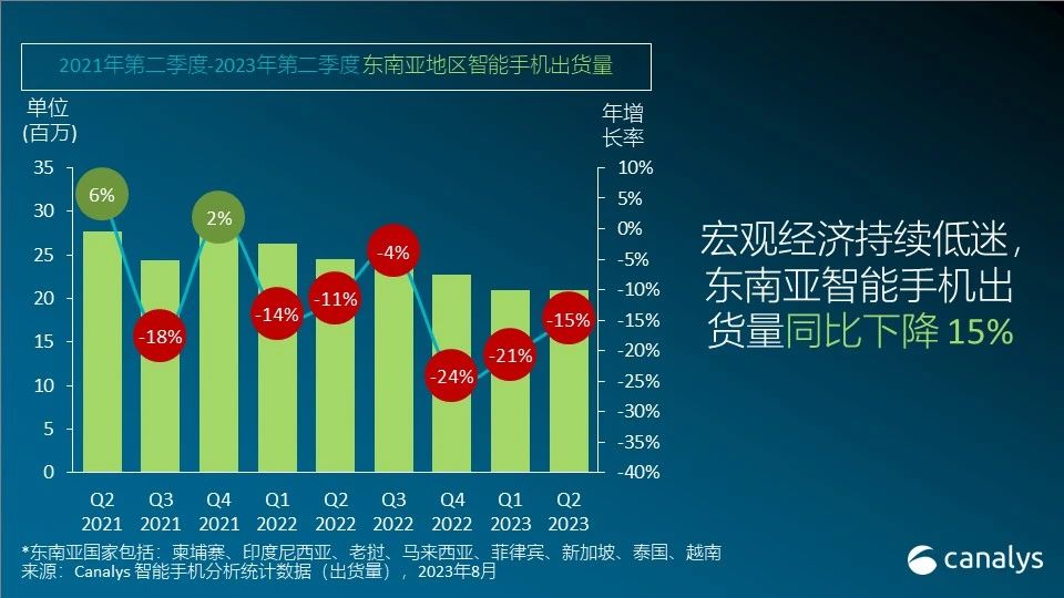 Canalys:2023 Q2 东南亚地区智能手机市场连降六季,下滑 15%
